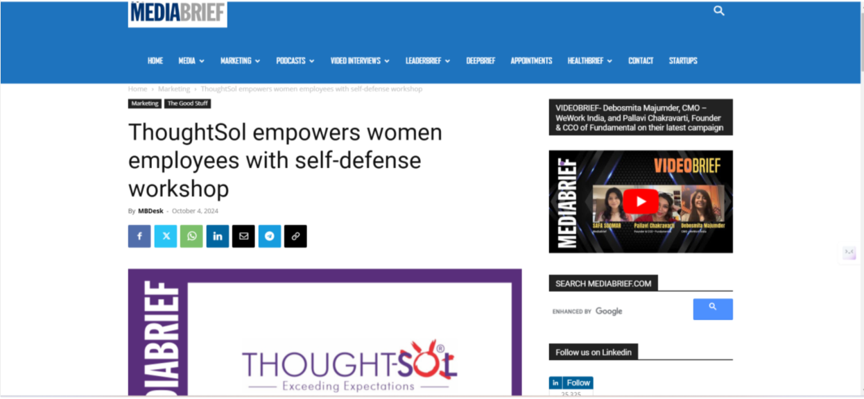 Shreya Mishra, HR Executive at ThoughtSol, added, “The self-defense training was highly relevant and much needed to combat everyday situations. The focus on safety protocols ensured everyone felt comfortable throughout the session.”