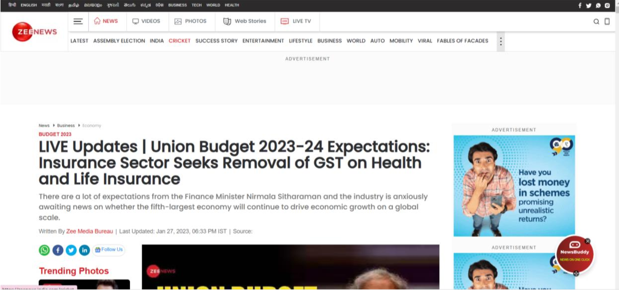 the Union Budget 2023-2024 in Zee News