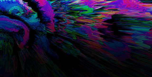 A slightly open MacBook Pro casts a multicolored glow from the screen onto the keyboard